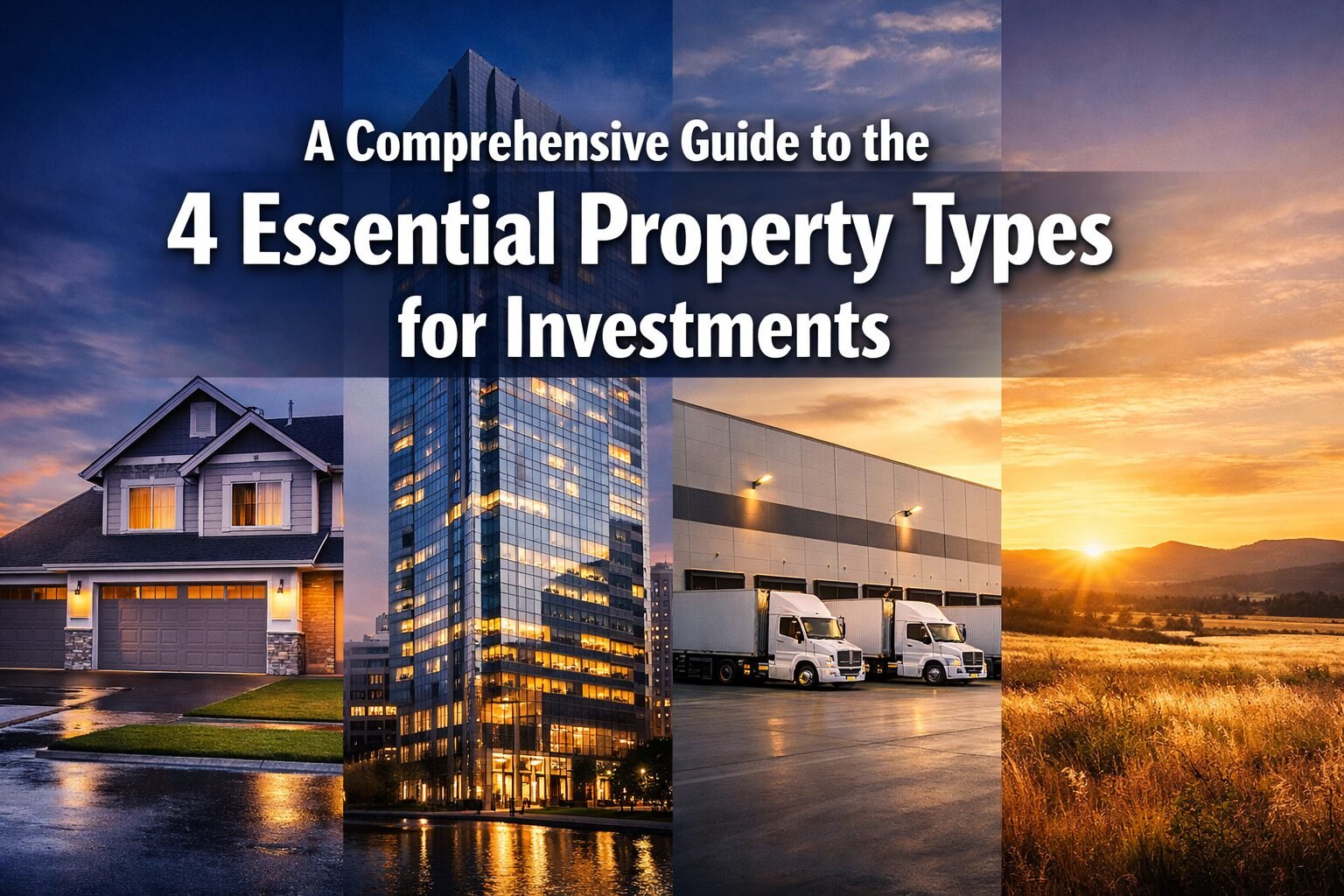 A: The four main types are residential (homes, apartments), commercial (offices, retail), industrial (warehouses, data centers), and land (raw, agricultural, or entitled parcels). Each has distinct income sources, risk levels, and management demands. [2]